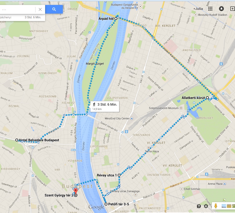 Nun habe ich auch ein „Gesicht“ zu diesem Namen, das einer faszinierenden Stadt in der verschiedenste Baustile aufeinander treffen, sich eine Kirche zur naechsten gesellt (man das Testament im Nachtkastl liegen hat), eine Burg die naechste uepertrumpft und lauter Staedte (unter anderem Paris und Wien) in einer vereint wurden, mit breiten Straßen und großen, offenen Plaetzen. Des weiteren den Gedanken an einen 20km langen Fußmarsch, diverse Sohlen- und Zehenschmerzen, aber wunderbare Eindruecke! Die Stadt selbst besteht eigentlich nicht nur aus den Teilen Buda und Pest, sondern auch aus Óbuda, welches touristisch aber nicht auffaellt.